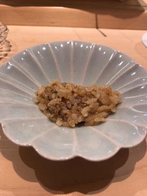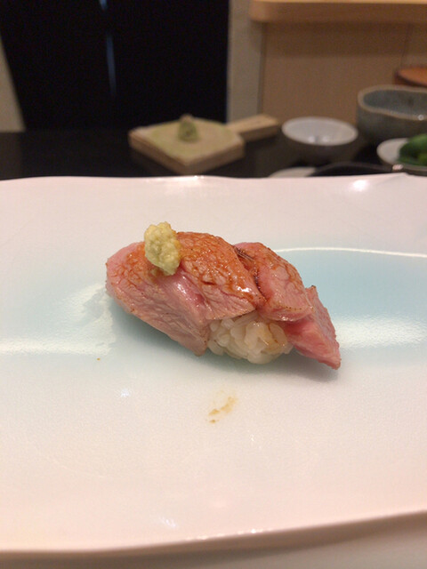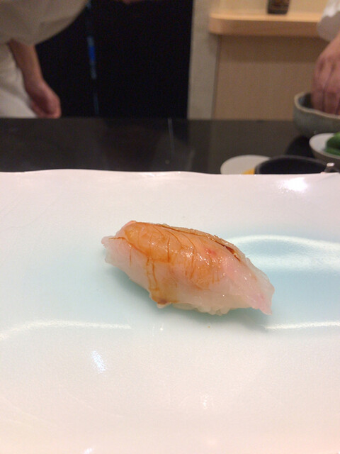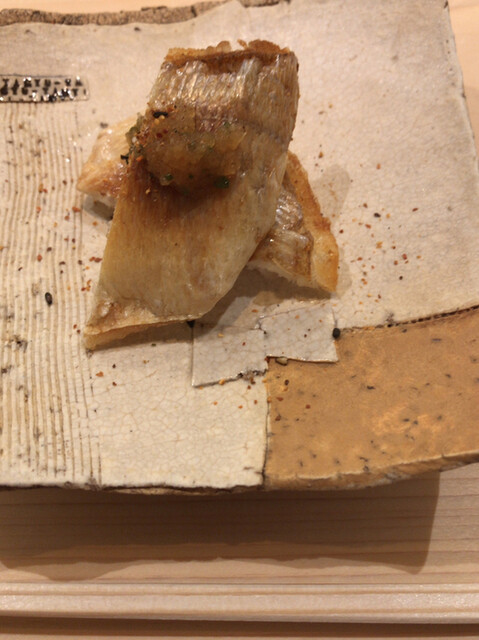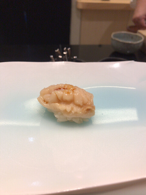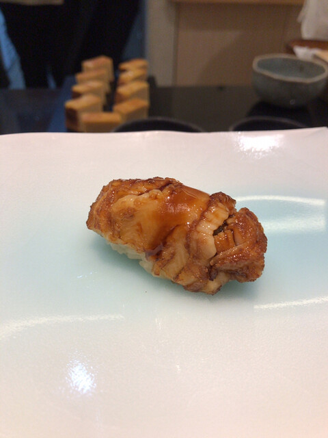 牡蠣はかなりの大振り。旨味満載。焼き穴子は生から焼いているらしく、皮はパリパリで身も締まった感じ。握りの食感と全く違って美味い。