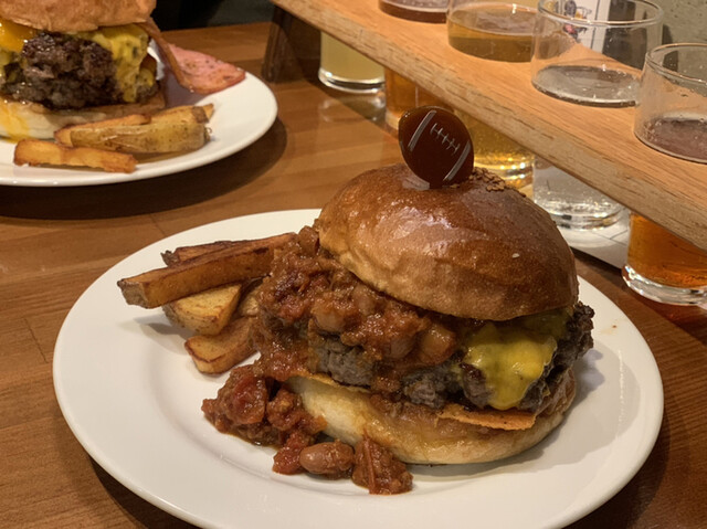 お酒を飲むとポップコーンが食べられるので、バーガーを待つ間に頼んだビールがおいしかった!