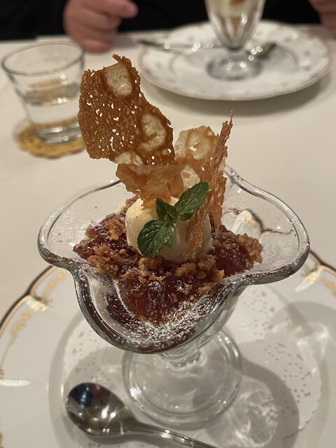 アミューズに前菜、アントレのメニューを頼みました。追加でデザートにチーズ盛り合わせとパフェ。