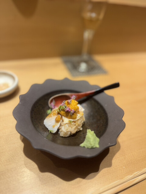 いかにのせたウニとキャビアの組み合わせはとても贅沢。