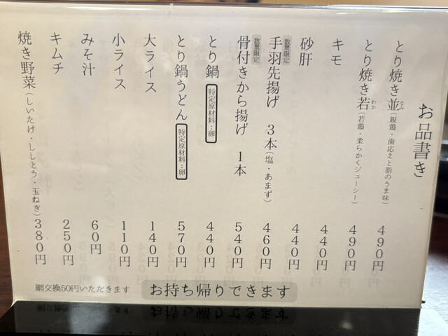 …で、結局追加でとり焼き若×3、ごはん大×1、キムチ×1