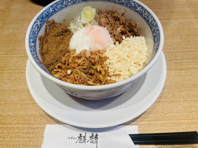 そばの上にぎっしり詰まった細かくしてある焼豚がぎっしり‼︎その上に半熟たまご。
