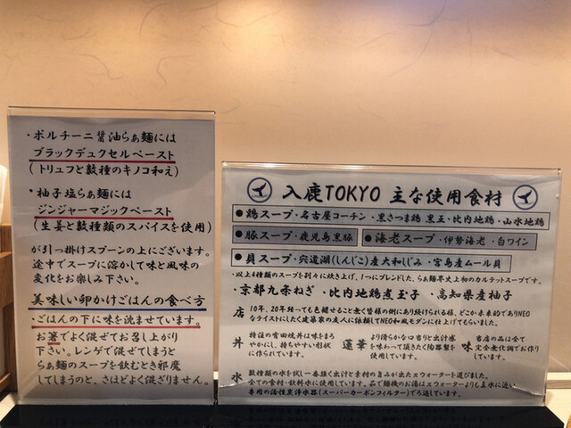 ポルチーニ醤油らぁ麺、特製トッピング、トリュフを添えた濃厚卵かけごはん