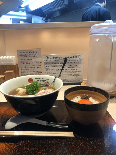 ポルチーニ醤油らぁ麺(特製トッピング)、トリュフを添えた濃厚卵かけごはん