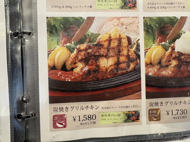 2026年、新年1/4(日)に、イオンモールでお買い物の流れで、お邪魔しました。私は、炭火焼きグリルチキン1580円、妻は、炭火手ごねハンバーグ200g1680円をいただきました。ご飯は、白米or麦ごはんからチョイスし、食べ放題できます。サラダバー、コーンスープバーも同じく食べ放題です。ジュージュー熱い鉄板の上にハンバーグや鶏肉は乗せられて提供され、食欲がそそられます。ソースも数種類からチョイスでき、好みに合わせることも嬉しかったです。熱々のハンバーグ、グリルチキンのお味が、また、納得!美味!何より素晴らしかったのは、店員さんたちの笑顔です。お正月、しかも昼時で、長蛇の列ができていましたが、対応は丁寧でした。私たちは、オープンキッチン前のカウンター席だったので、キャストの会話や表情もとても生き生きして、にこやかなコミュニケーションて、手早いのが、よく分かったのです。このお店のよさをしっかり感じることができました。お勧めのお店として、紹介させていただきます。ご馳走様でした。また、来ます!