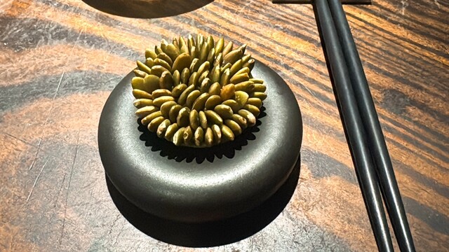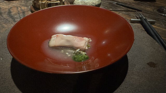 店内に入った瞬間、高級感と独特な装飾センスに圧倒され、まるで美術館に来たような感覚でした。コースは約25種類ほどの料理が次々と提供され、どれも味はもちろん、器や盛り付けの美しさに驚かされました。視覚・味覚の両方で楽しませてくれる素晴らしい構成です。