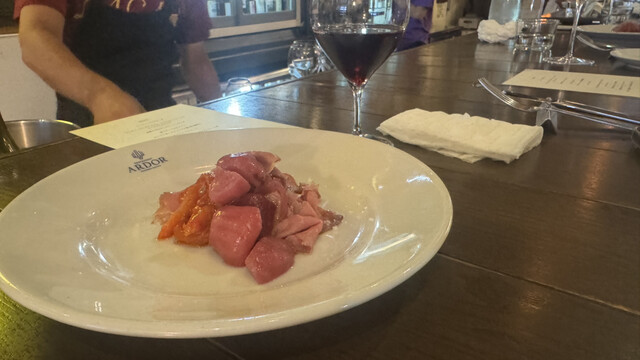 一番の楽しみだった薪窯ピッツァは、生地がもちもちで香ばしく、まさに絶品。特にマルゲリータはシンプルなのに深い味わいで、素材の良さがしっかり伝わってきました。前菜には県産の食材を使ったものが多く、沖縄らしさを感じられるのも嬉しいポイント。