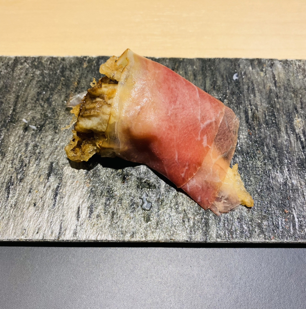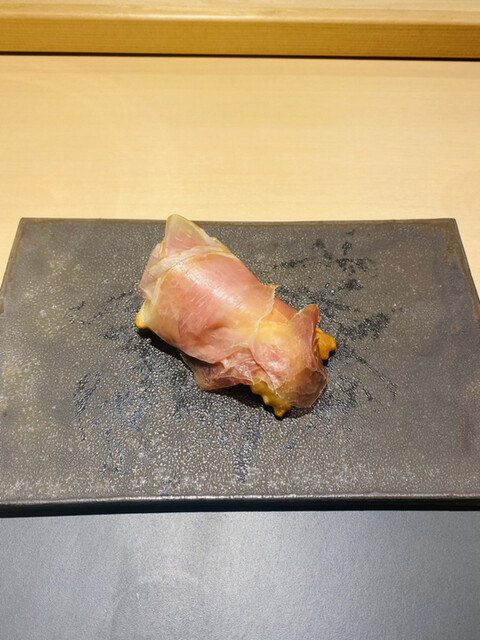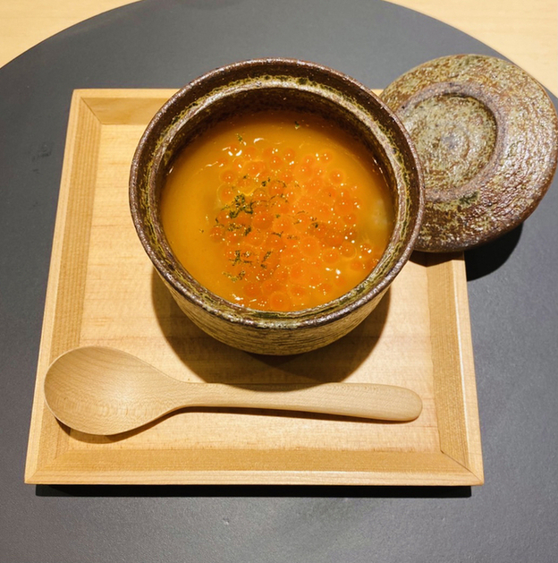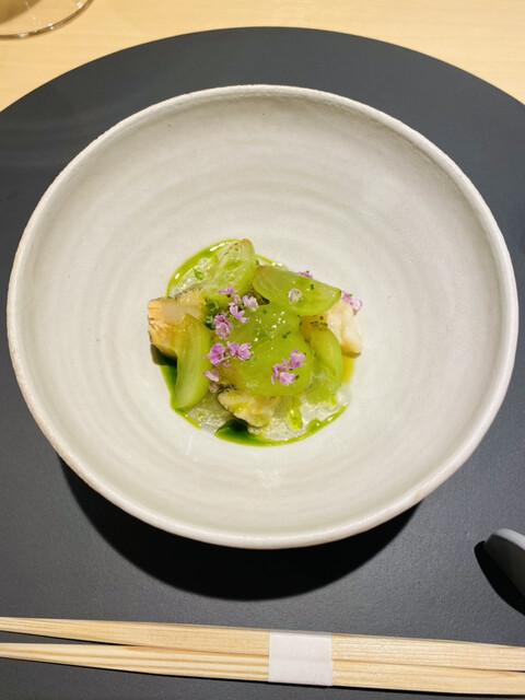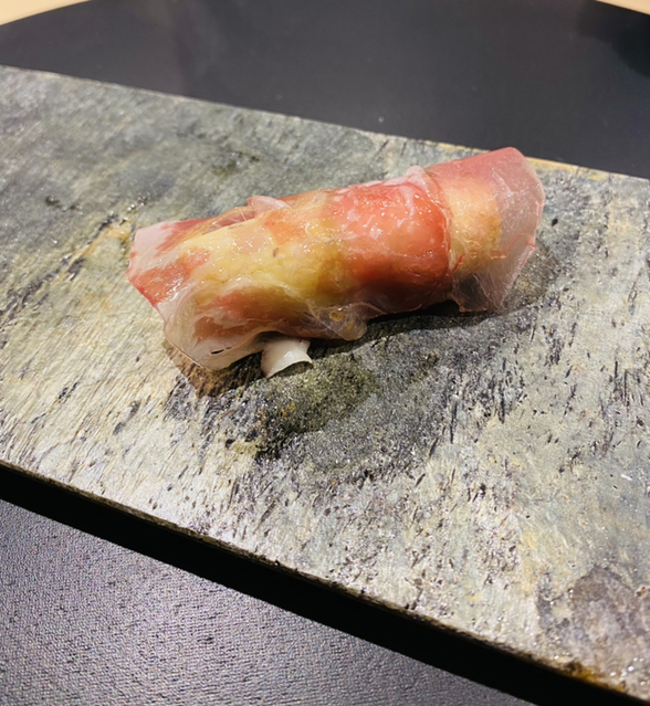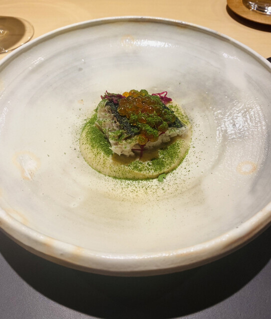 前菜2皿目のイクラはグラッパで洗ったもので、アルコールと水溶液がどうとか…わからないけどサワラのアクセントになっていて美味