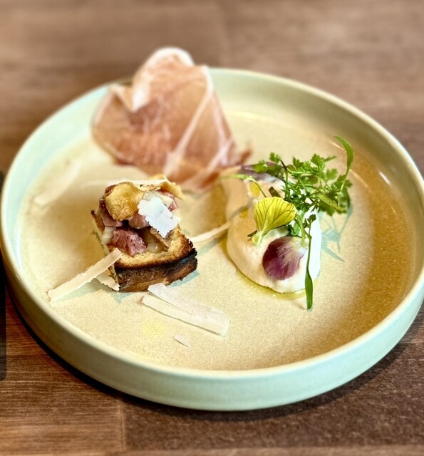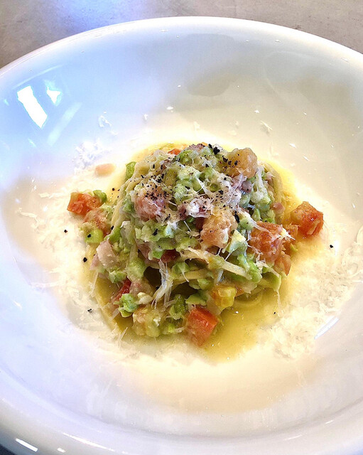◇ジャガイモのカペレッテイ・夏野菜と白茄子のソース白茄子のソースが美味しかった(笑) ジャガイモの詰め物にひと工夫欲しいかな、彩りがもう少し。