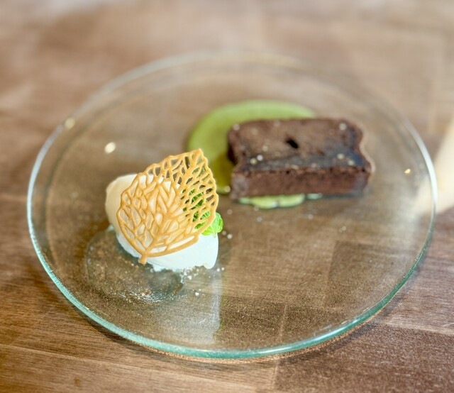 エゴマ入りチョコレートケーキ小野園抹茶ソース