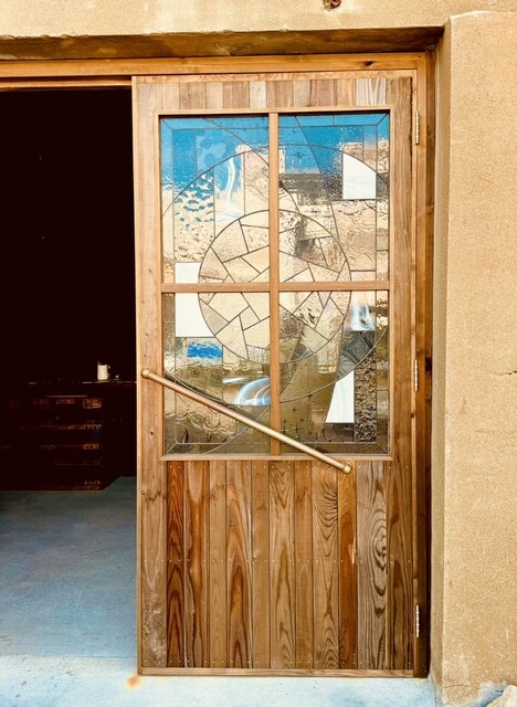 ガラスドアで仕切られ隣りにビール醸造所あり
