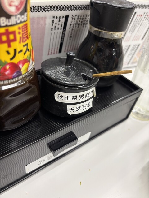 テーブルにある秋田県男鹿半島の天然塩か、天つゆで楽しみます(・∀・)