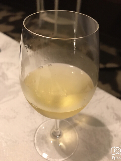 ここでドリンクが無くなり、お次にいただいたのは 白ワイン。銘柄についてシェフから説明をいただいた筈ですが、全く憶え無し。ただし、飲み易かったのは 確か。