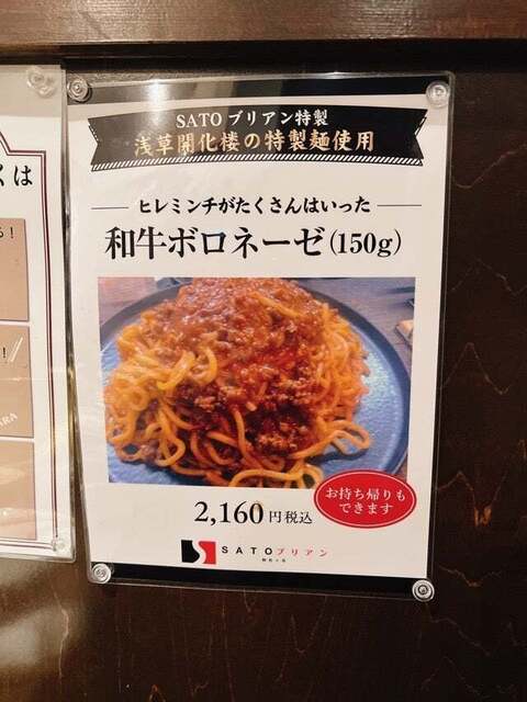阿佐ヶ谷駅周辺に4~5店舗ある超人気焼肉屋さんSATOブリアンさんのにごう店へ行って来ました~今回は平日の17時30分を予約ちなみにお店は2時間制なのでちょっと慌ただしかったかなぁ~ SATOブリアン直球コース15800円にしました看板メニューのブリめし・ヒレすき・ブリカツサンドが食べられて〆には和牛ボロネーゼまで食べられる贅沢なコース まずは生ビールで喉を潤します薬味類ははじめからテーブルセッティングされていました塩系のタレとニンニクが入った醤油ダレの二種類 お通しは和牛ビーフシチューお肉は柔らかくお味は濃厚で美味しかった(^-^)キムチ盛りは白菜キムチとカクテキの二種類チョレギサラダも出てきました 今回のコースはお肉が7種類出てきて全部で約310gとの事最初のお肉は厳選肉の3種類極上タン・厚切りハラミ・たれ赤身肉 基本お店のスタッフの方が焼いてくれます大き目なお肉は食べやすいようにカットまでしてくれ超ラクチンタンはレモン汁やネギ塩タレで食べるのがおススメとの事極上タンは本当に柔らかい~そして厚切りハラミはお肉を食べているって実感できる味 箸休め的に長芋の漬物が~こう言う所がコースの良い所 塩の赤身肉とサーロインサーロインはサシがとっても綺麗 赤身肉はカメノコでサッと焼いてくれますカメノコはおろしポン酢がオススメとの事サーロインはワサビで頂くのがグッド本当にお肉の脂が甘くてジューシー 感激(笑)いよいよメインのお肉の登場デスシャトーブリアンはお肉の王様見るからに美しくおいしそう~~~お店の名物ブリ飯はガーリックバターが入った醤油ダレでお肉を焼いてその後アルミホイルに包んで寝かせますそして再び少し焼いて完成ご飯は白飯とキノコご飯が選べましたがスタッフさんおススメのキノコご飯をチョイス ブリ飯はシャトーブリアンを半分にカットしてご飯に乗せると完成デス一切れはガーリックバター醤油の味付けで頂いてその後スタッフさんがウニを持って登場 ご飯の上にウニを乗せてブリ飯の完成ウニの旨みとお肉の旨みが両方感じられ最高にウマウマ そしてシャトーブリアンのお肉を使ったブリカツサンドも名物お肉がとにかく柔らかくマスタードが良い仕事しています ヒレ肉はすき焼き風で頂くのでたまごが出てきましたヒレ肉を焼いて甘辛いタレをつけてタマゴににくぐらせて頂きました~これも美味しい コースのお肉が終了したけどちょっと物足りなかったので切り落とし120gを追加注文切り落としと言ってもトモサンカクとシンシンのかなり良い部分を出してくれました ご飯も貰いスタッフさんが食べ頃に焼いてくれたお肉をご飯と一緒に頬張りましたああ~幸せ(^.^)〆は和牛ボロネーゼか冷麺が選べますひとつづつ頼もうかと思いましたが二人の場合は同一の物にして下さいとの事やっぱり和牛ボロネーゼをチョイス浅草にある開化楼の特製麺を使っているとの事最後チーズをたっぷりかけてくれて完成お肉が贅沢に入ったミートソースの旨味が最高でした デザートは抹茶アイスさすがにこれだけ食べるとお腹いっぱいです(笑) お会計は2人で36000円ぐらいしましたが満足度はかなり高かったデス他の支店にも是非行ってみたいと思います