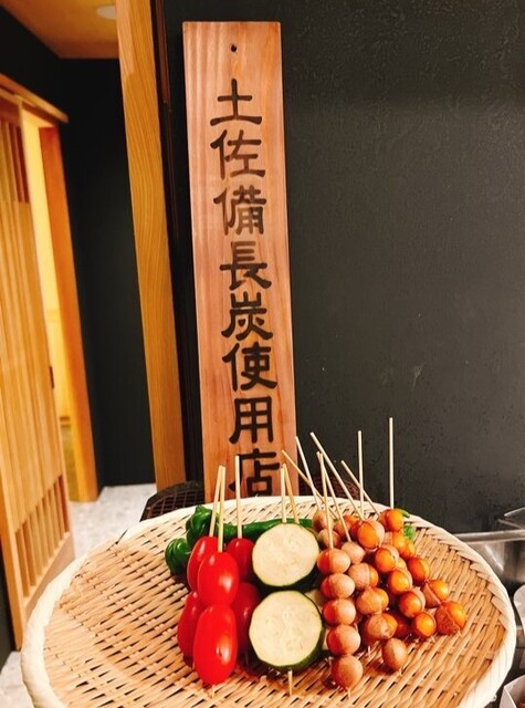 お店の入り口に土佐備長炭使用店とあり