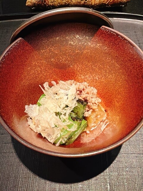 麻婆焼き茄子と万願寺唐辛子のお椀も素晴らしかった