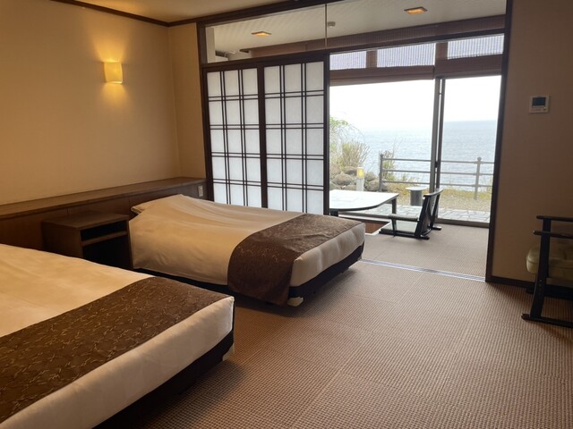 お部屋には露天風呂も付いてるので、お風呂からも海を見渡せます。