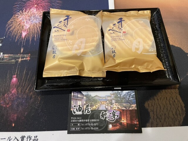 お部屋のお菓子は、鼓月のプレミアム千寿せんべい。