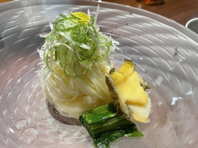 ◇生素麺 蒸し鮑 トマト酢橘つゆ