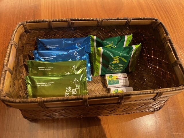 お部屋のお菓子は、小豆島のお土産屋さんでも売られてたものが、数種類。
