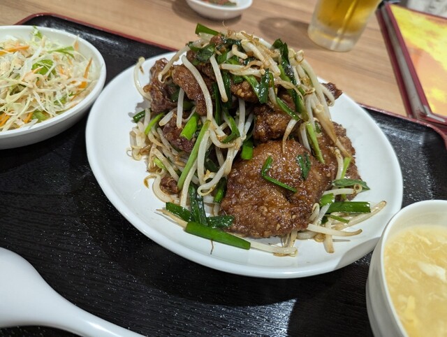 私は唐揚げ定食、パートナーはメンチカツ定食を注文し、シェアして食べました。