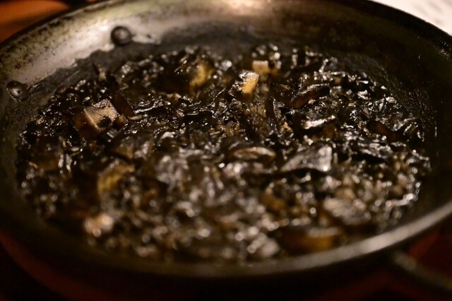 アオリイカのイカスミパエリア (アオリイカの旨味とイカスミの濃厚さと) 4500円
