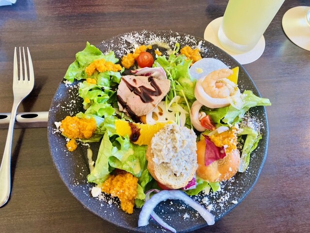 この前にチャリで島散策をしていたこともあり、お腹ペコペコだったのて2人でがっつり注文...