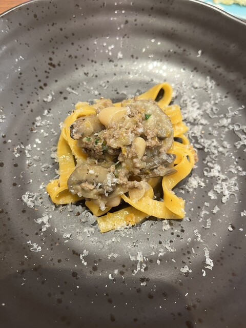 2品目のパスタはこだわり卵を練り込んだタリアテッレ、黒毛和牛のひき肉が入っててボリュームありで美味しい