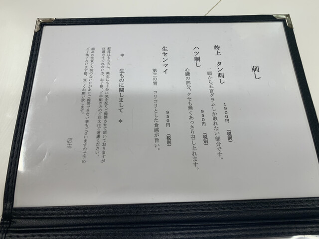 今回は予約をして伺ったのですが、電話予約した時だけオーダーできる限定コース(牛たたき&ホルモンねぎ焼がプラス:+1,000円)があるよ、と教えてもらってしっかりお願いしました。