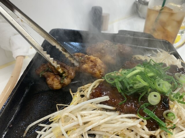 肉厚のたたき肉には胡麻油がかかっていて、塩&フライドガーリックを付けて食べると、肉の柔らかい食感と口の中で溶ける肉汁が美味しい。