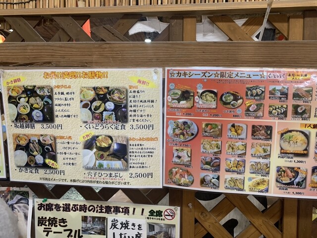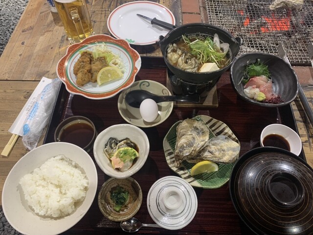 焼き牡蠣食べ放題は、以前別の店で試したことがあり、味がずーっと同じでしんどかった、と結論付け、御膳と焼き牡蠣とプラスアルファにしようと言うことになり、10時から1.5時間経過した11時30分過ぎに席に誘導されました。