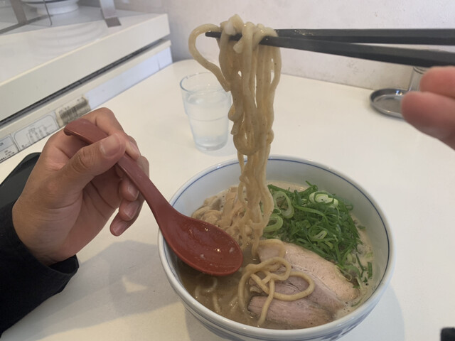 スープは鯖出汁にキリッと存在感のある醤油が合わさりつつほんのりと甘味を感じさせ、後を引く味で美味しい。鮮烈な鯖風味が、いつまでも印象的。