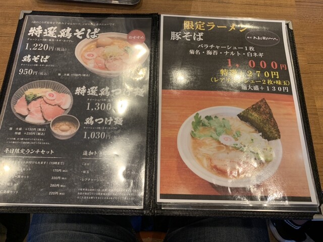 スタンダードな特選鶏そばで決めていたのですが、限定の(特選)豚そばがあるのが目に入り、一瞬揺らぐも、当初通りの注文に。チャーシュー丼は、やっと食べられるので、すべてを味わいたくて注文しました( ̄∀ ̄*)エヘ