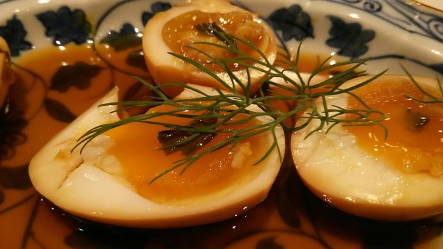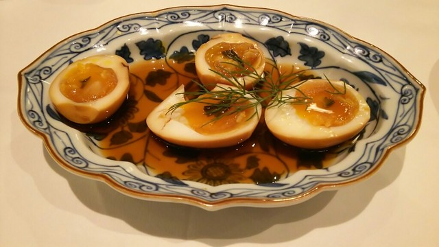 「五香茶叶烏蛋鶏 烏骨鶏の卵のジャスミン茶煮」1,080円。