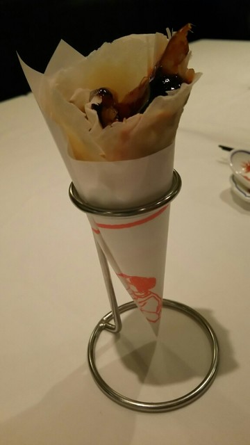 「川式鵞肝焼鴨春巻鱔 腐乳風味のフォアグラ四川ダックの生春巻き 1本」1,512円。