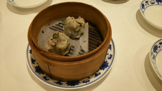 「翡翠魷魚焼売 大ヤリイカと豚肉の春菊たっぷりシューマイ 2コ」648円。