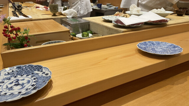 板場には4人の職人がいましたが、距離感が絶妙で楽しく鮨をつまむことができます。