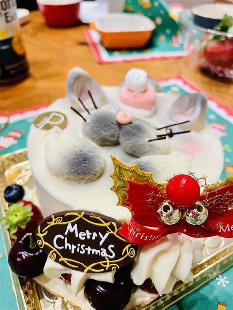 猫ちゃんのクリスマスケーキが気になっていて、今回初めて予約して購入しました。甘過ぎるのは苦手なので、4種類あるうちのティラミス味のシャム猫を予約。14時で店内混雑なく受取できました。味は、外側のクリームは甘いですが、中のほろ苦コーヒー味と丁度良く美味しかったです。