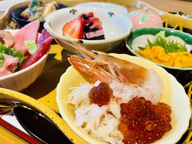月曜日の11時過ぎで、待ち時間なしで入店できました。前々から行きたかった店なので、奮発して花かご御膳をオーダー。海鮮から穴子天丼まで小鉢で少しずつ食べられて、どの小鉢も美味しかったです。茶碗蒸しからデザートまで、和食のフルコースの様でした。