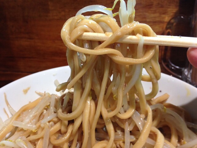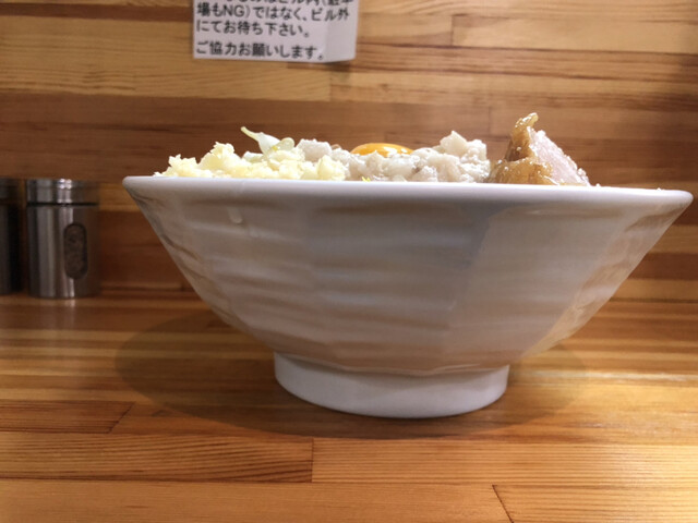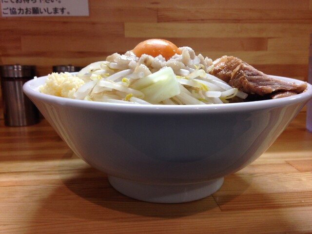 野菜少なめニンニクアブラ有りの味濃いめ