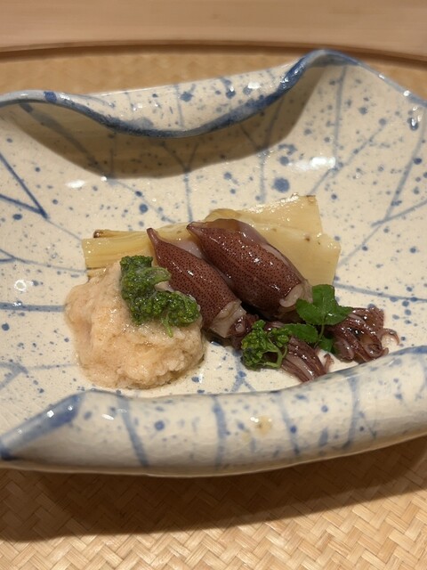 最初の前菜的な菜の花とみる貝は、出汁がとても出ている、そして菜の花の苦味を感じない。