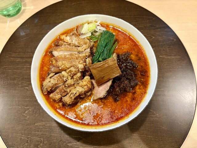 11月限定で食べられる担々麺は最高!辛さと痺れのバランスが素晴らしく、モチモチの縮れ太麺がしっかりスープを絡めて持ち上げてくれます。チャーシュー炊き込みご飯も食欲を満たしてくれるボリューム。担々麺好きは必食の一品です。うますぎ!ちなみに親鶏は少し固めなので、歯の弱い人は注意が必要かもね。衣にスープが浸ったところは絶品。
