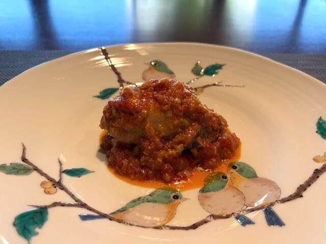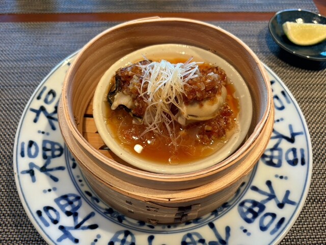 南伊勢の特大 “岩牡蠣” を使ったチリソース煮はミルキーで旨みと独特の食感が楽しめ、岩牡蠣のエキスの塩分とトマトの甘みだけで作ったチリソースも優しい味付けで深みがありグレードの高さを感じます。