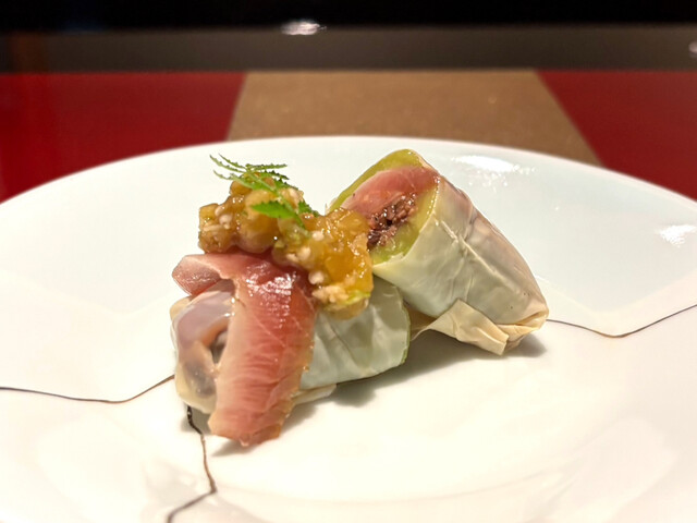 伝統技術を基に卓越した創造性と幅広い知識からカテゴリーを超えた端正なお料理が生み出され、素材の特性を捉え複合的な味わいを美しく表現、一皿一皿に美味しさと楽しさのエッセンスが散りばめられています。