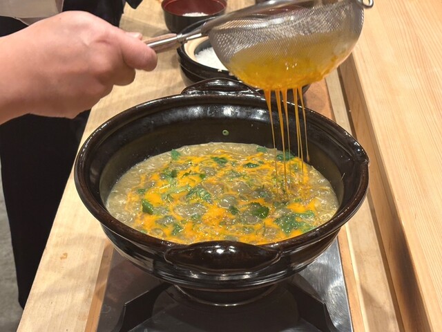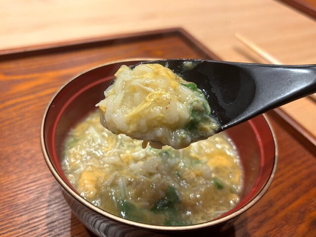 越前蟹は余す所なく美味しさを堪能、焼きは火入れ加減よくふっくらした蟹肉の濃厚な旨みや甘みが味わえ、爪フライも蟹味噌のコクとクリーミーでとろけるような舌触りが楽しめ、締めのお雑炊も越前蟹のエキスが溶け込んだ濃厚なお出汁に玉子のまろやかさが加わり、海の恵みを味わうことができました。
