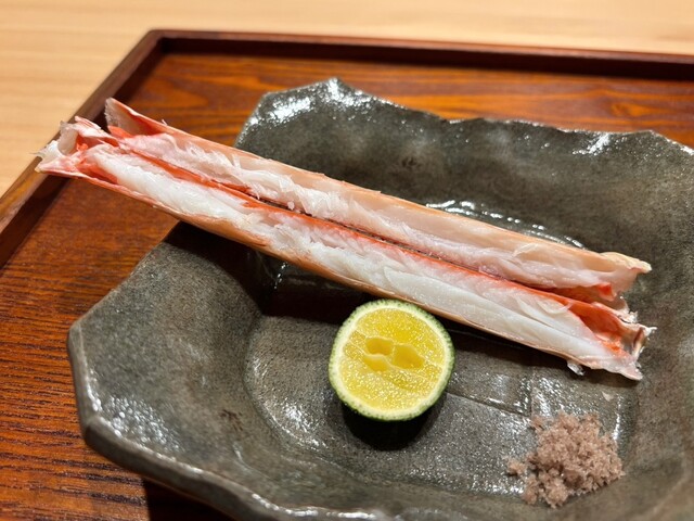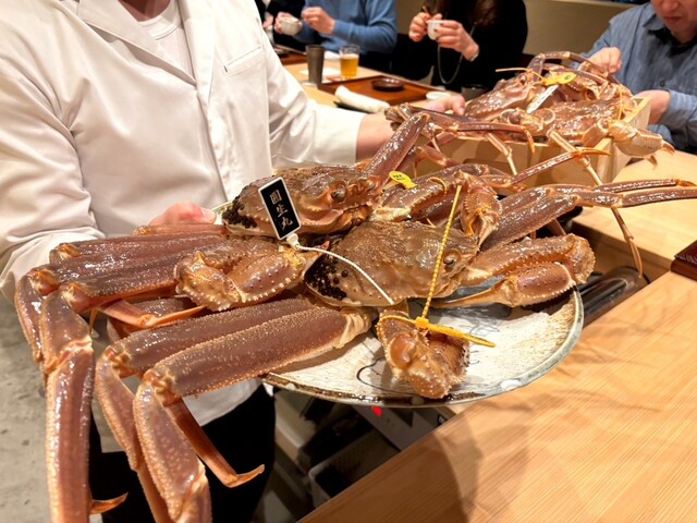 「越前蟹コース」は、立派な越前蟹1.5kgが8名で4杯、清水港で揚がり直前に神経締めされた鮮度抜群のお魚、フレッシュな地元野菜などハイグレードな素材をご用意頂き、店主お一人で手際よく調理され、一品一品 匠の技で品の良い仕上がり、伝統的な京料理と上質な魚介を融合させた端正なお料理で、素材の旨みを最大限に引き出しています。