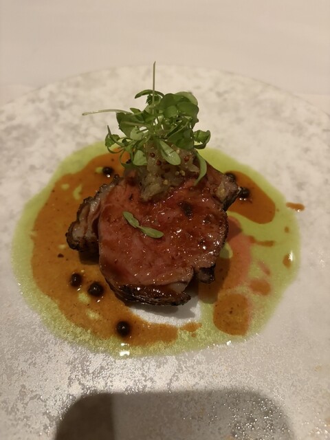 昨年7月openの和仏融合イノベーティブ料理店。おまかせコース16500にワインペアリングハーフ4000円台をオーダー。始まりの鹿コンソメ白トリュフでお店のクォリティが高い事に期待が高まります。鮮魚の3品に真鯛白子は上品で見た目も美しく、素材をソース、付け合わせで引き立たせています。甘鯛は鱗揚げでパリパリ、鮭イクラ飯のイクラはその食感に驚きです。羊も北海道産で高品質、何よりソース!そして山椒が本当に良く合います。デザート2品も濃すぎず美味しい。パテシエさんもいます。メニューは2週毎に変更とのこと。妻が相当お気に入りでした!また必ず伺います!