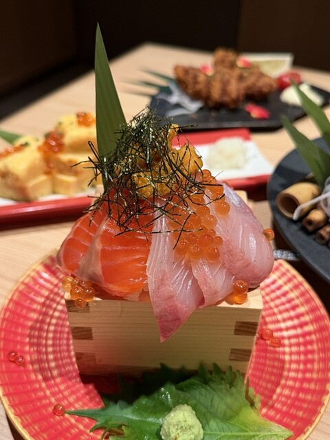 「有楽町で味わう、海の宝石箱と厳選日本酒。豪華『お造り五種』や『うにいくら海鮮丼』を完全個室で堪能。きめ細やかなおもてなしが、大切なひとときを最高に彩る和モダン空間。」
