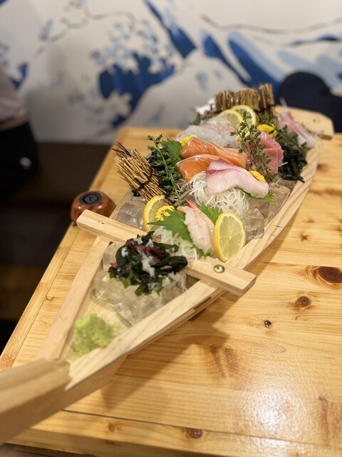 鮮度と迫力が違う。魚吉酒場の「舟盛り」は、宴会を盛り上げる特大サプライズ!刺身、手羽先、おでん、餃子!食べたいが全部ある。