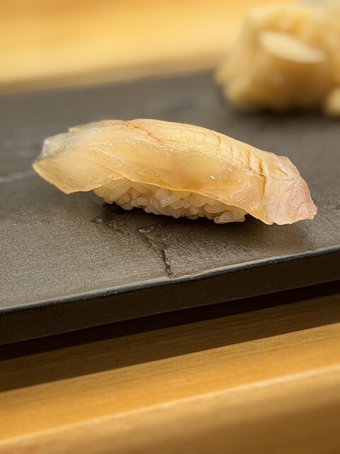 •アジ 新鮮で臭みが一切なく、薬味との調和が素晴らしい。ネタの新鮮さが際立つ。